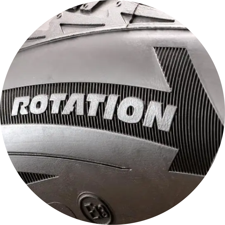 A directional tread pattern is engineered to rotate in a single forward direction. It has side