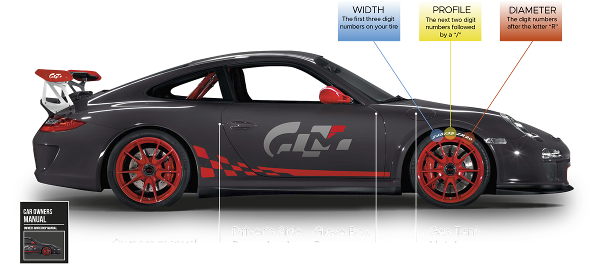 Use our guide above to easily and quickly find your tire size from the side of your existing tires. Still need help? Alternatively you can take a picture of your tire and send it to us here.