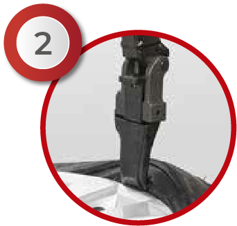 The "lever-less tire machine" uses a different method of breaking the bead and dismounting the tire so that scratching the wheel or damaging the tire does not happen. To break the bead there are two hardened plastic rollers on either side of the rim that are set exactly to the point just between the wheel and tire and then locked into place. Taking turns, the wheel is spun and each roller is slowly lowered to apply pressure on the tire all the way around the wheel. The tire is slower broken away from the bead of the rim without applying massive amounts of pressure to the rim itself. Once the bread is broken there is another hardened plastic arm that slips into the tire, catches the edge of the tire, and literally lifts the tire up and over the wheel avoiding spokes and applying zero down pressure on the face of the wheel. Without the use of a lever there is no pressure placed on a guide head and no risk of damaging or tearing the tire.