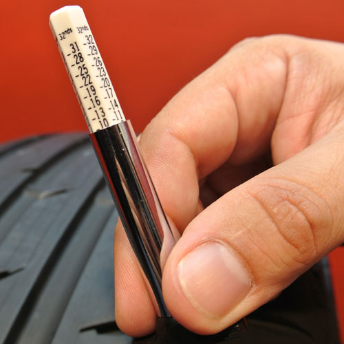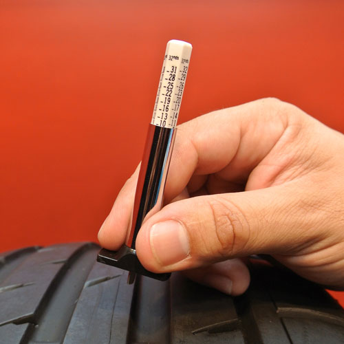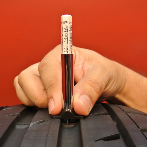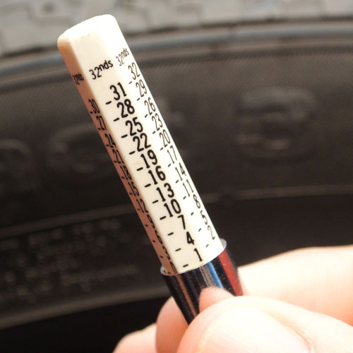 While U.S. coins can be used to estimate remaining tread depth as a tire approaches the end of its useful life, the established method of measuring remaining tread depth in the U.S. is with a gauge that reads in 32nds of an inch (other countries measure tread depth in millimeters). Typical tire tread depth gauges measure up to 32/32nds (or 25-26mm) since almost all passenger car and light truck tires begin with less than one inch of tread depth.