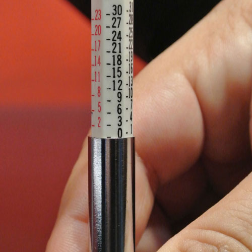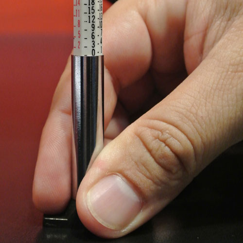 Push the measuring scale into the gauge as far as it will go