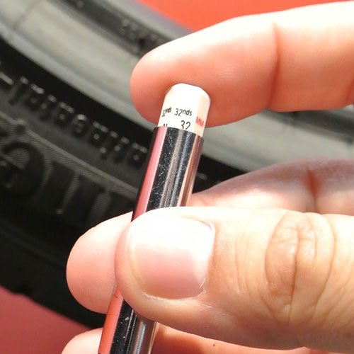 Confirm which measuring scale you are using. Some tread depth gauges measure in 32nds of an inch (left), while others measure in both 32nds of an inch and millimeters (right).