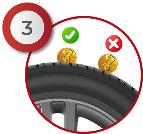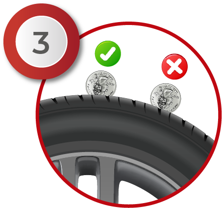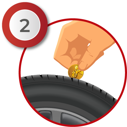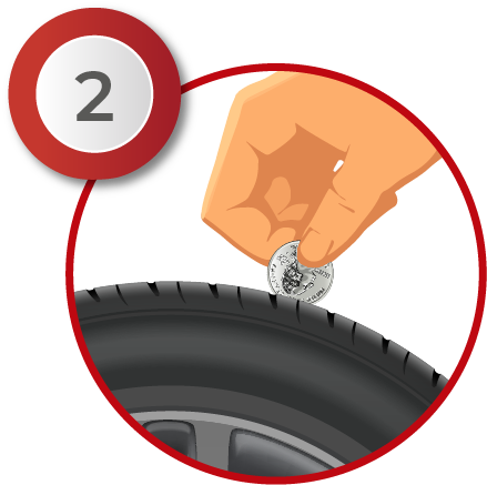 An easy way to check tread wear is to perform the penny test: